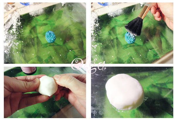 Frota el camafeo con un poquito de maizena para que no se pegue la silicona. Alisa bien la masa de silicona para que no haya arrugas y presiona contra el camafeo, cubriéndolo bien, verás que no tienes mucho tiempo antes de que la masilla empiece a endurecerse , haz presión para que se marque bien todo el relieve y deja la parte de arriba lisita y plana, luego así luego al darle la vuelta te será más cómodo si en vez de fimo usas resina, pues no se volcará.