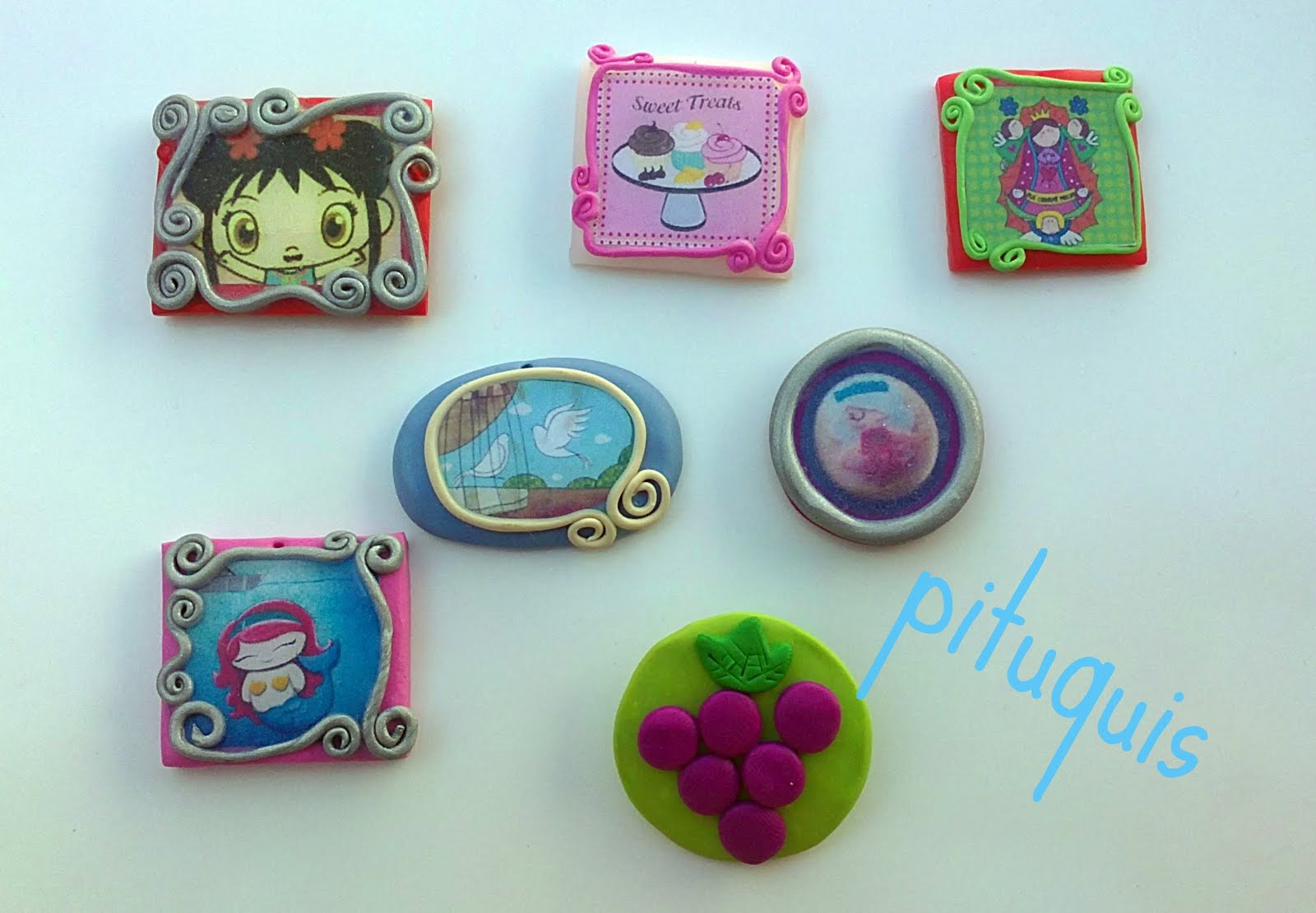 Hoy os quiero enseñar una de tantas cosillas que tengo sin enseñaros. Son estos camafeos de fimo con ilustraciones.