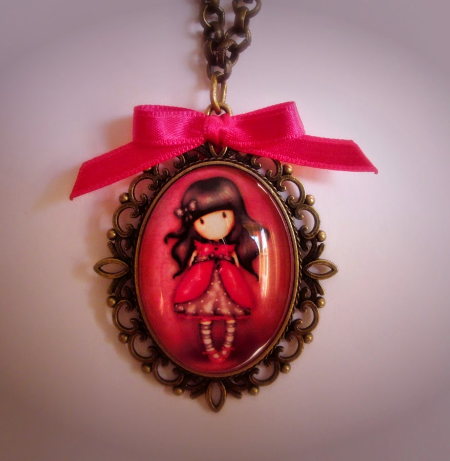 Este otro camfeo plateado de la muñeca Gorjuss en tonos rosas lo hice para mi hija pequeña, ¡le encanta el rosa!