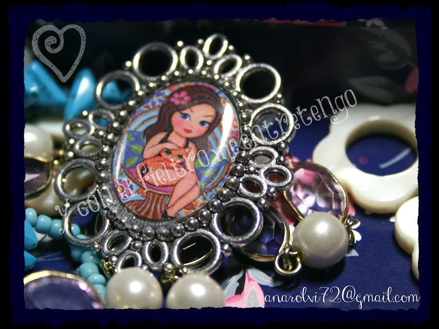 Dando un giro a los trabajitos. He vuelto a ponerme con los camafeos con base metálica en color plata, bronce, dorado.