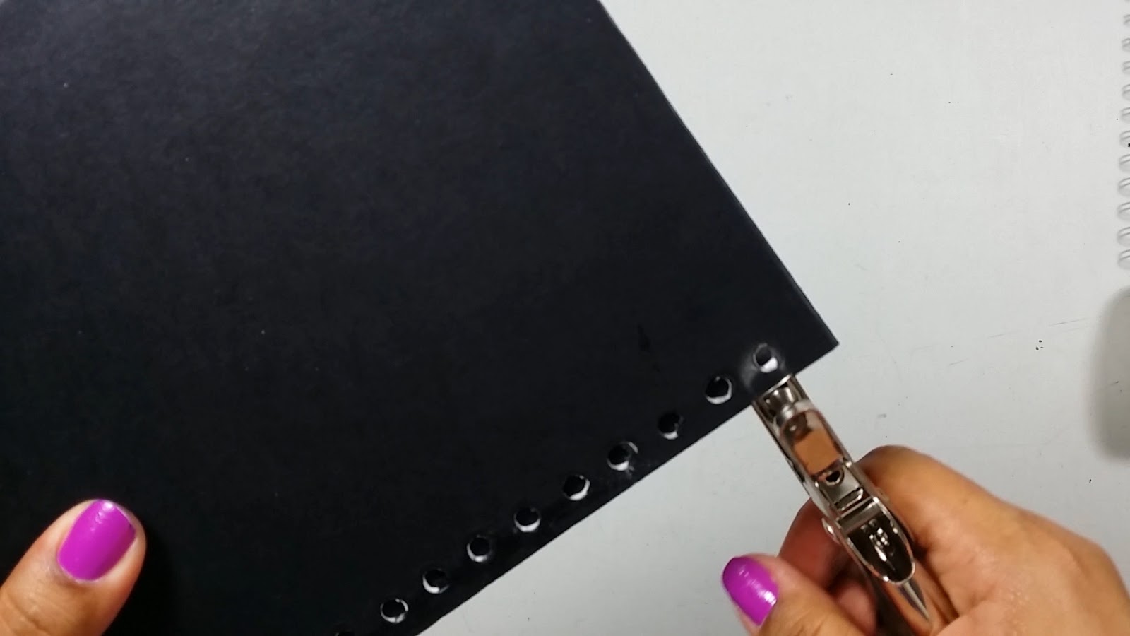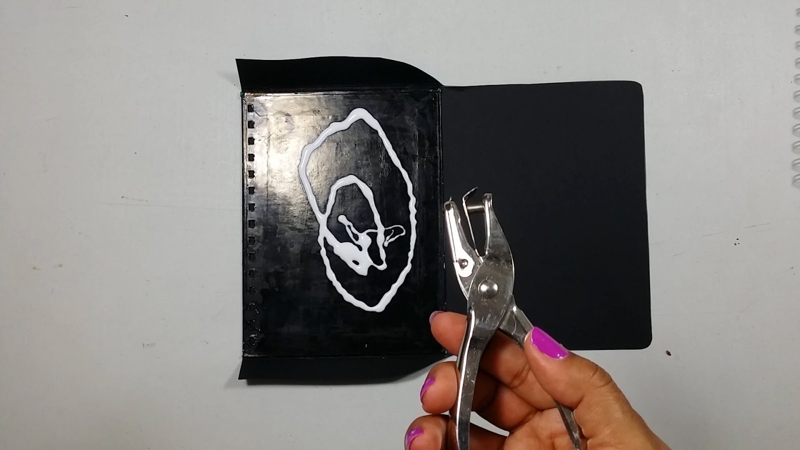 Luego con un abre-hueco me voy a asegurar de perforar las caratulas para poder colocar nuevamente el espiral (comencé a colocarle la pega y después fue que me acorde de abrir los huecos)