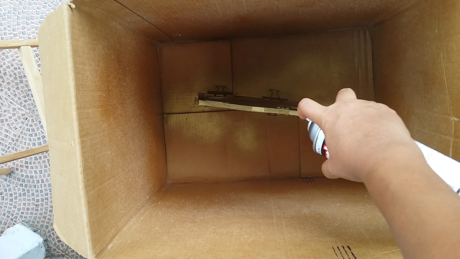 Para utilizar la puntura en aerosol debemos estar en un espacio bien ventilado o al aire libre, yo utilizo una caja de cartón para aplicar la pintura
