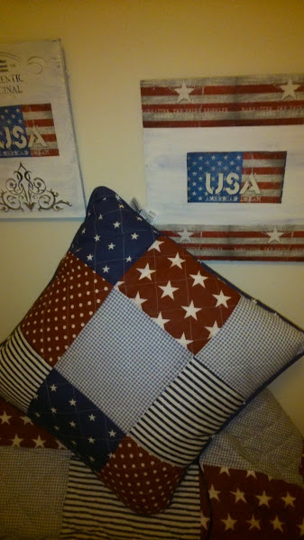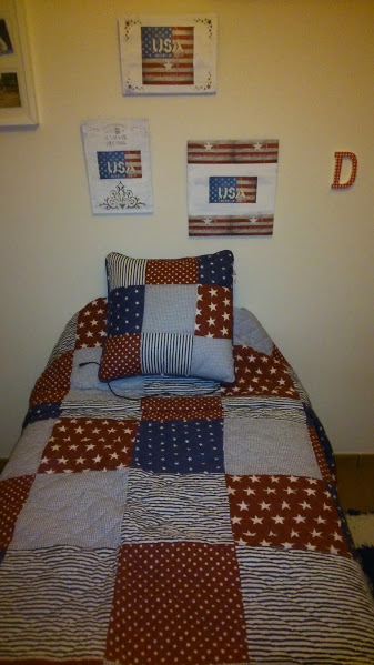 Ya que estaba en plan americano, le compre la colcha a juego de los cuadros
