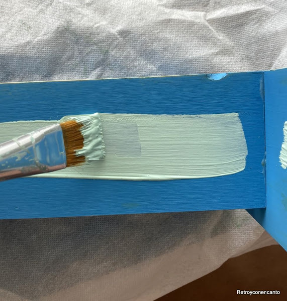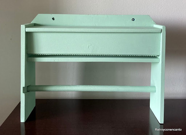Pero, como ya hemos dicho que nos gustaba, estábamos decididas a darle otro uso, y otro aire con pintura verde mint... ¡Qué raro!