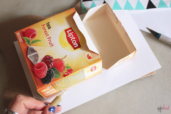 Hoy te traigo un Diy muy rápido y fácil de hacer. Vamos a convertir una caja de té llena de propaganda en una bonita caja para guardar cositas.