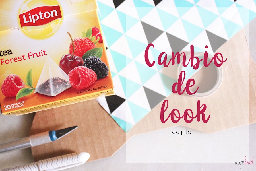 La caja es la típica en la que te viene el producto, esta vez una caja de té de la marca Lipton. Con unos folios, papel de envolver bonito, celo de doble cara y pegamento de barra vamos a dejarla preciosa.