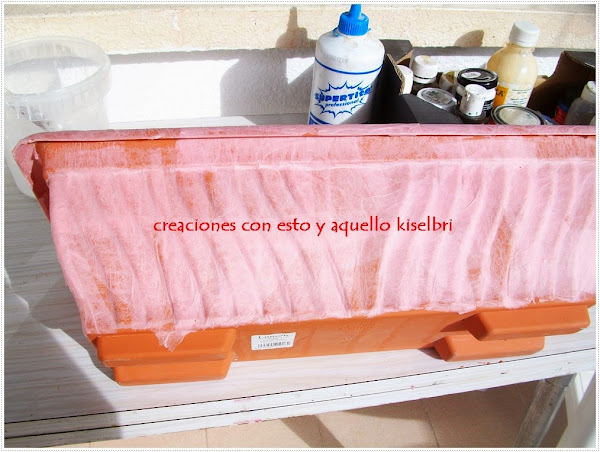 Y por último este envase de lejía perfumada de 3 ltspero que tiene un diseño que me gustó. Corté, achiqué el tamaño y con enduído cubrí para darle color cuando secó.