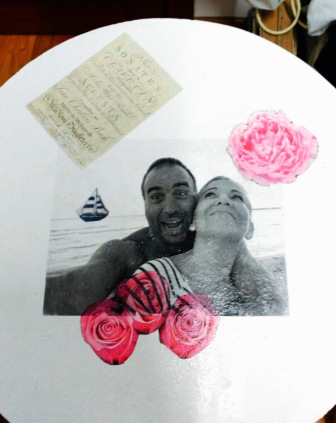 4. Con la técnica de foto transfer le transferi la foto en el sobre de la camilla.
