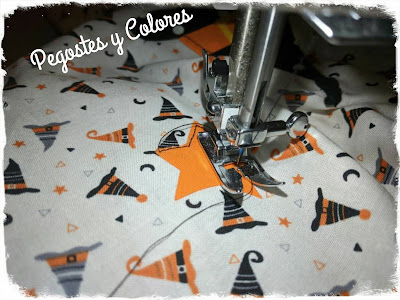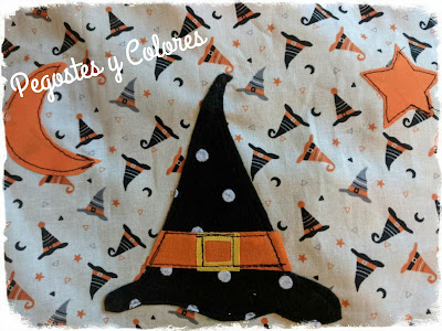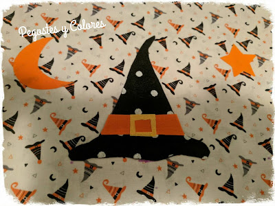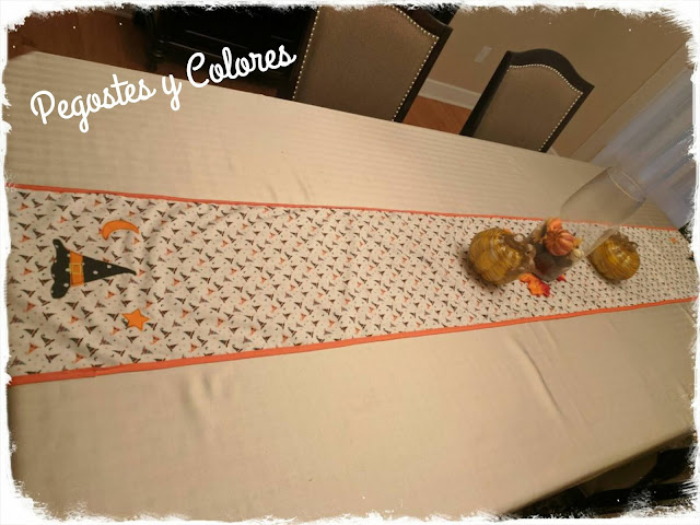 Ya tenemos toda la casa decorada de Halloween! Asi que les ire mostrando todo lo que hemos preparado. Me gusta hacer decoraciones bonitas y divertidas, no demasiado asustadoras pero si con mucho humor.Y asi es como ahora les presento este camino de mesa, con una linda tela de sombreros de bruja. Para acentuar un poco mas el tema, se me ocurrio poner unas figuras usando adhesivos de activacion con plancha. Solo dibuje el mismo sombrero de la tela, asi como una luna y estrella pero en tamaños mas grandes para adornar un poco las orillas del camino.