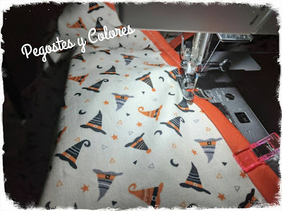 6.- Cerre todas las orillas cubriendolas con cinta de bies naranja.
