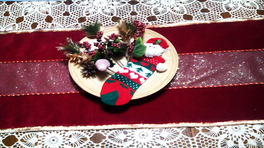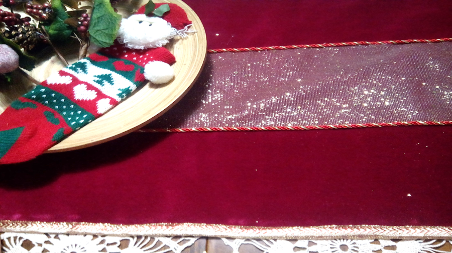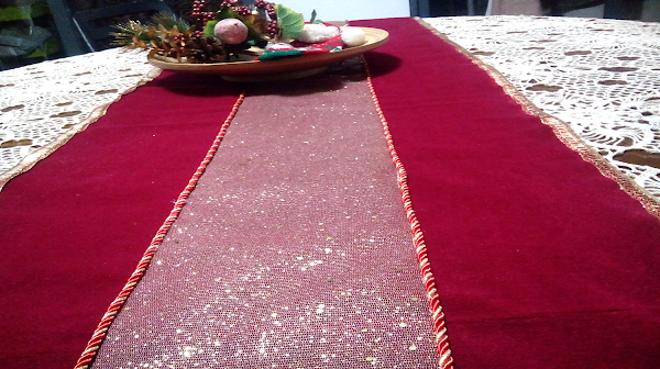 Tenía ganas de hacer un camino para mi mesa, así que aproveché una tela que me regalaron (gracias Maruja ) para hacer uno de navidad, pues el color de la tela eso me pedía!...