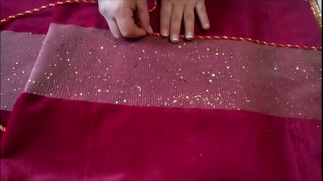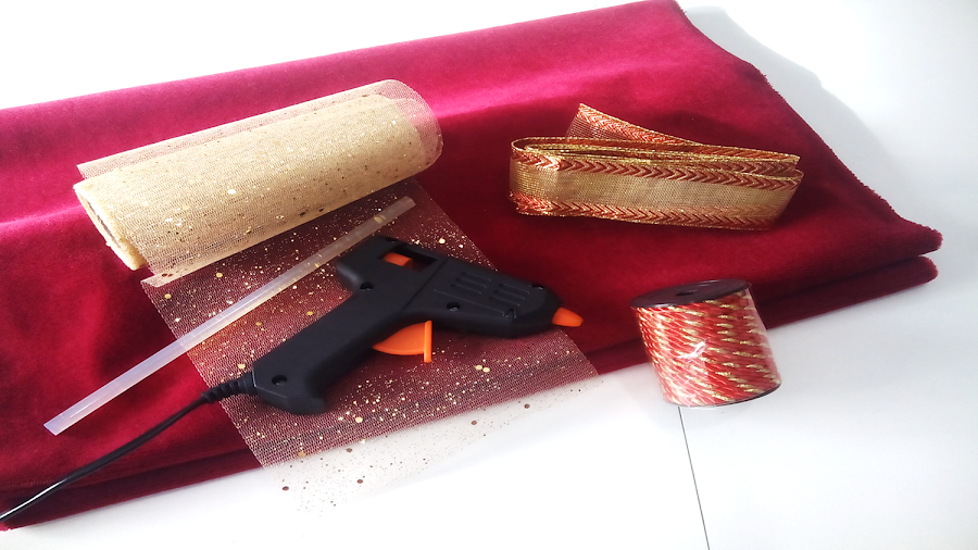 Y por último le ponemos, con la pistola termofusible, el cordoncillo por los lados del tul, para tapar la costura que le habíamos hecho