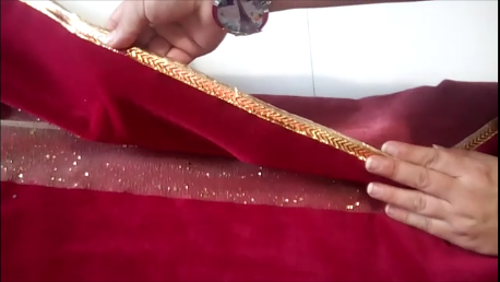 Lo primero fue planchar bien la tela antes de empezar. Luego colocamos el tul en el centro y a lo largo y lo cosimos a mano, con un hilvanado corto.