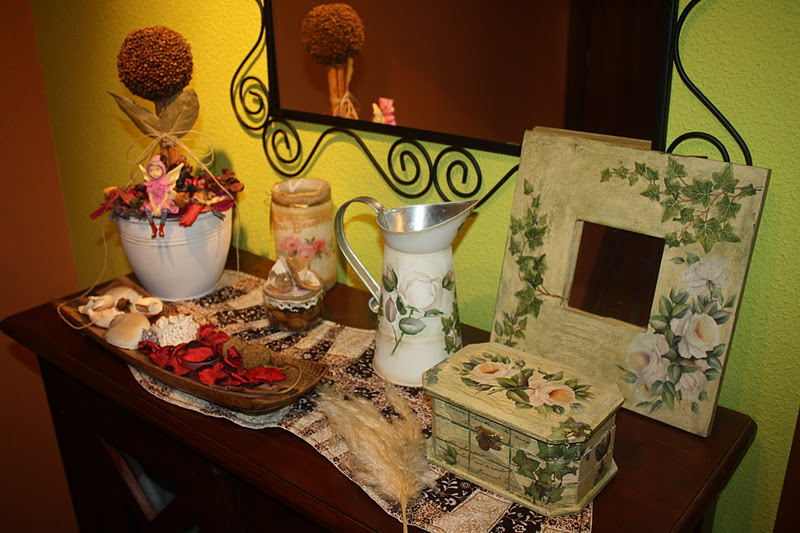 Y ya que nos poníamos, decidí que la mesa del recibidor necesitaba otro camino para lucirse esplendida......¡¡pues manos a la obra, que me has pillado trabajadora¡¡.