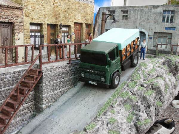 Le modifique la trompa y le puse un frente impreso de una foto de un Mack Mid-liner