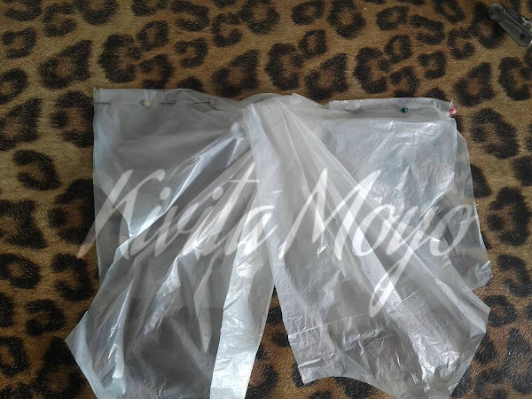 Plegar la parte superior sobre si, atrapando el drapeado de la otra mitad de la delantera, haciendo coincidir la Linea de Division.
