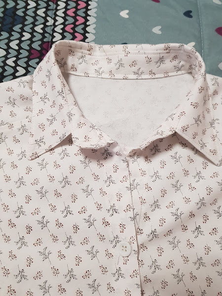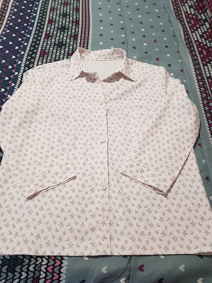 Como he dicho el cuello es camisero y los botones los he colocado en color blanco , pense en ponerlos en color granate o gris como el color de las florecitas pero al final gano el color blanco aunque siempre puedo cambiar el color de los botones en un momento .