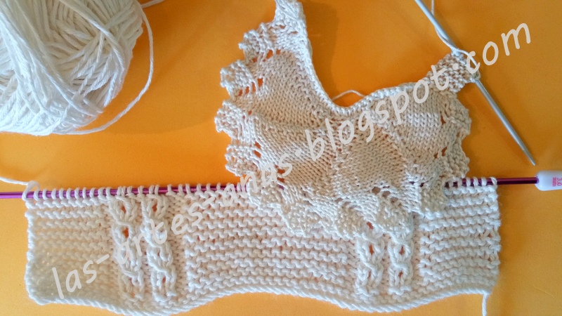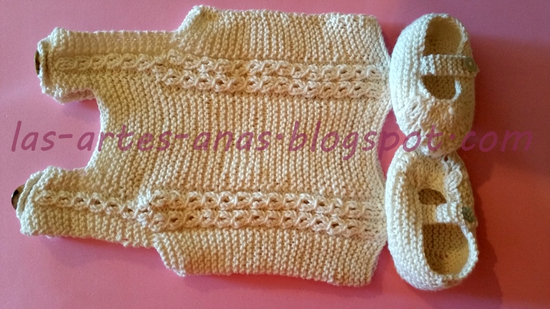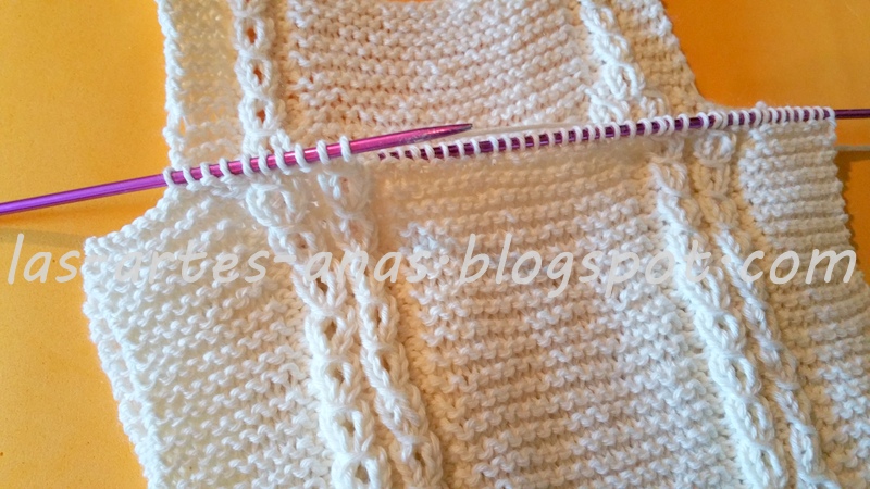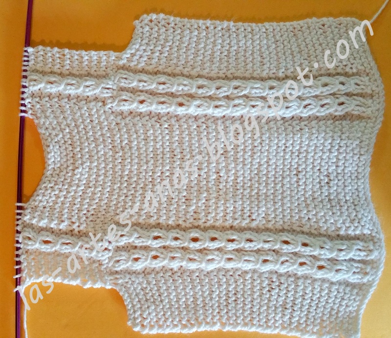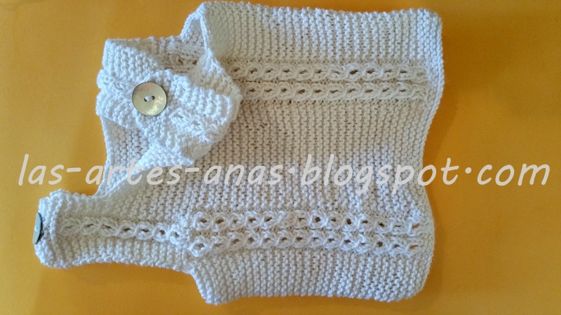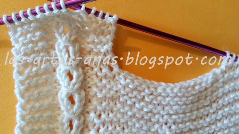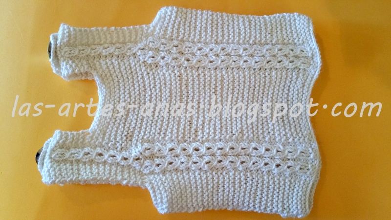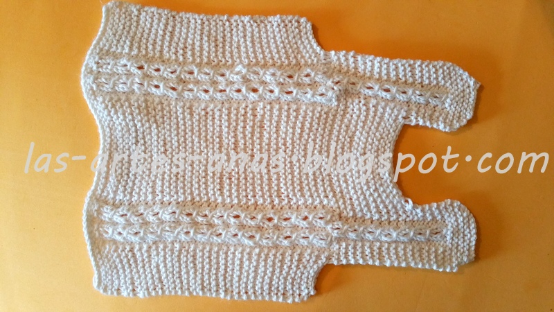 ESTE DISEÑO, de mi creación, se presta muy bien para principiantes, tejiendo todo a punto bobo o Santa Clara, sin los ochitos calados,