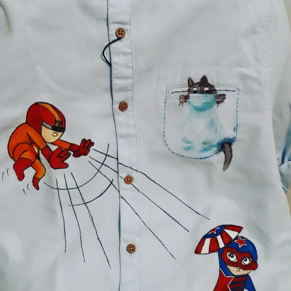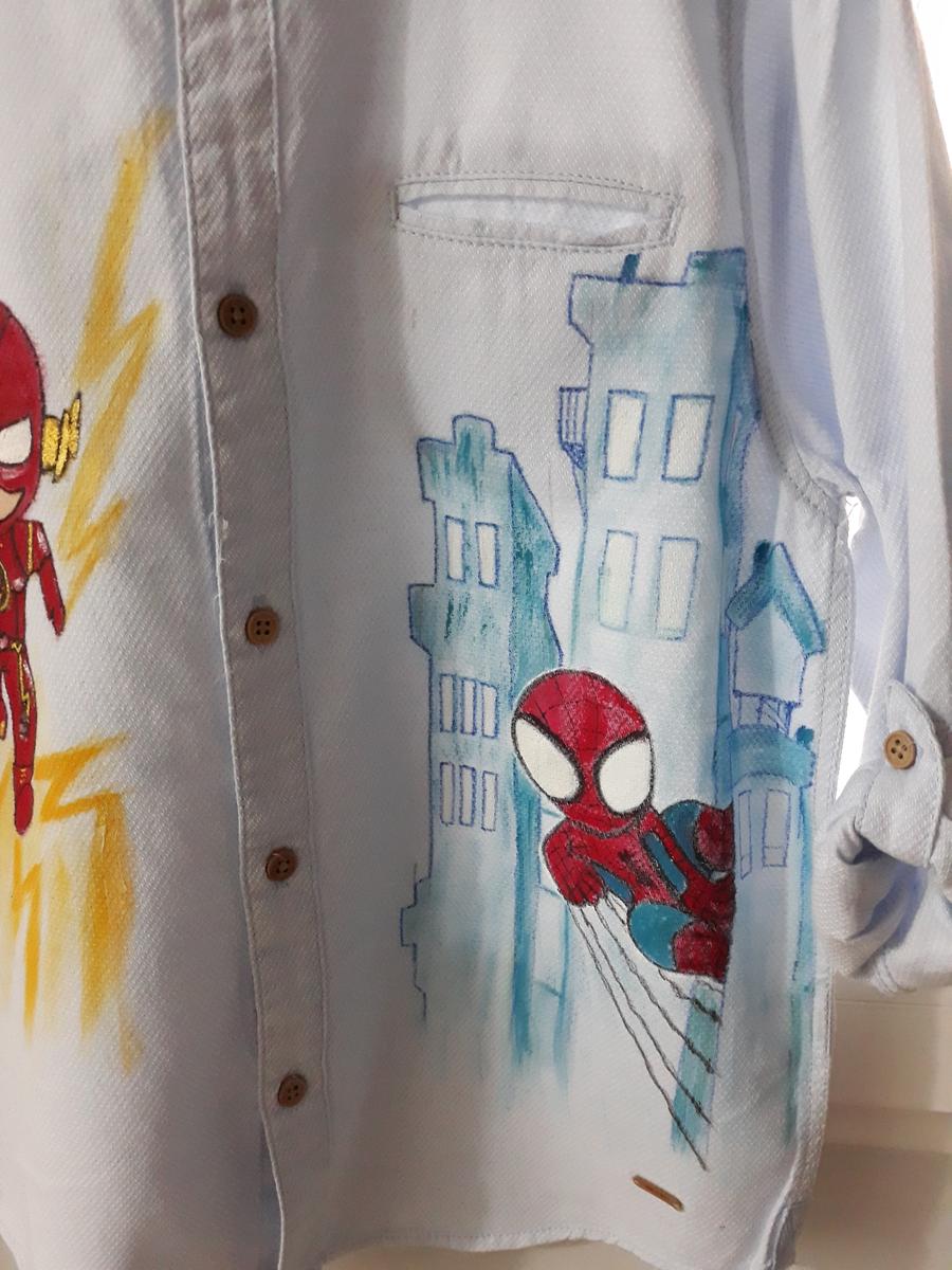 Esta camisa se la he pintado a un sobrino para su cumpleaños.Esté año le gustan los Super Héroes , jajaja, que edad tan bonita tienen, digo tienen, porque son dos los niños, la otra camisa ya la puse en otra entrada, también pintada con su Super Héroe preferido.