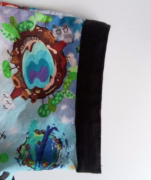 En el bolsillo además de ponerle tapeta negra en contraste le he añadido un vivo alrededor porque mira ya que no caso los dibujos, pues por lo menos que contraste el bolsillo.