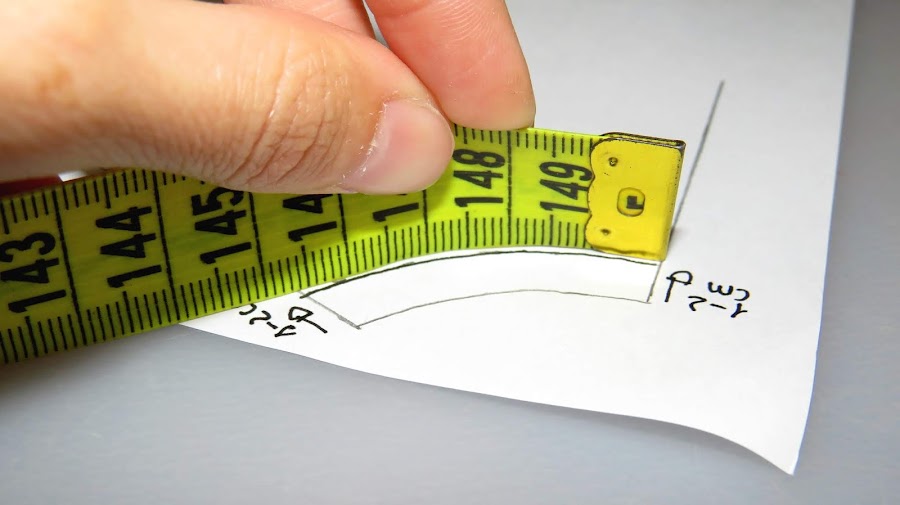 Lo primero que hacemos, al igual que en el cuello polo, es medir con el metro la medida de escote delantero y espalda, teniendo en cuenta que en el delantero, no se incluye el cruce que hicimos para la botonera