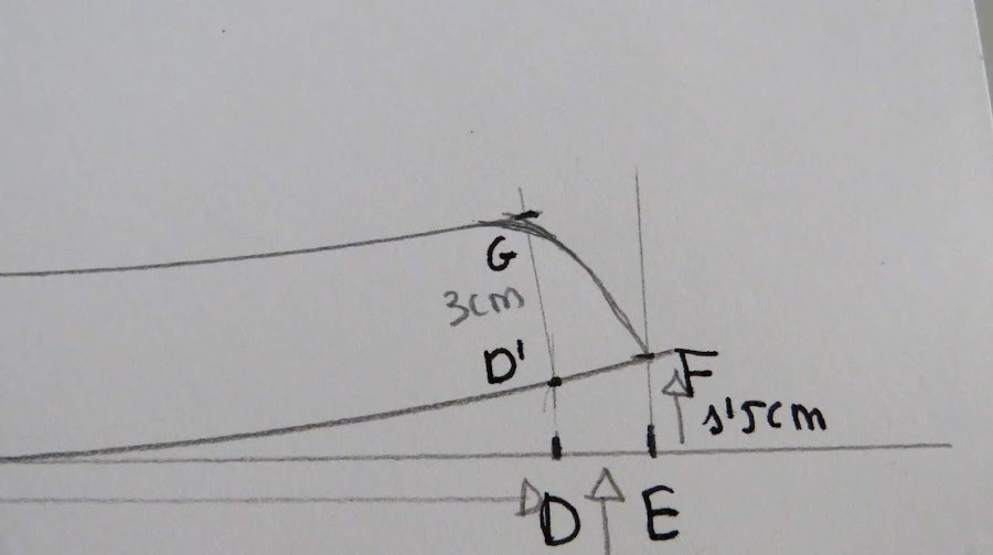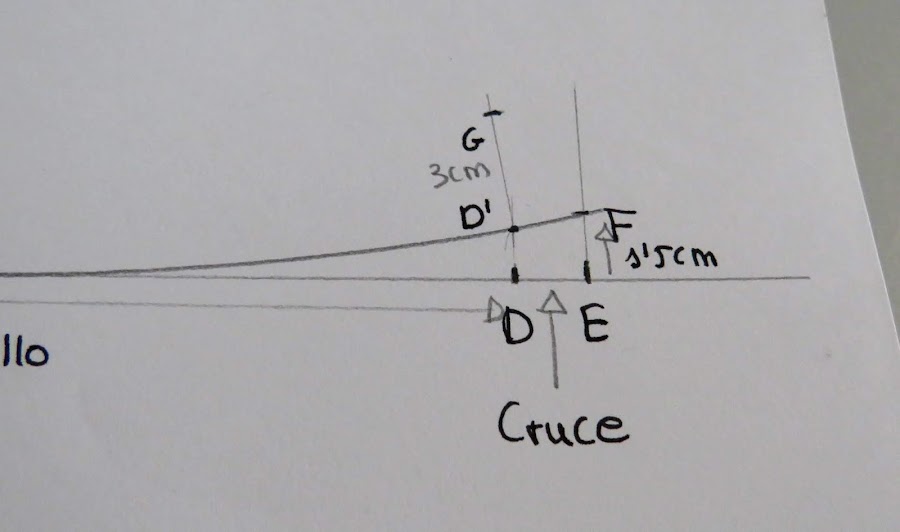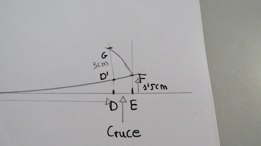 Donde está el punto D, subimos hasta donde toque con la curva que hicimos y marcamos punto D