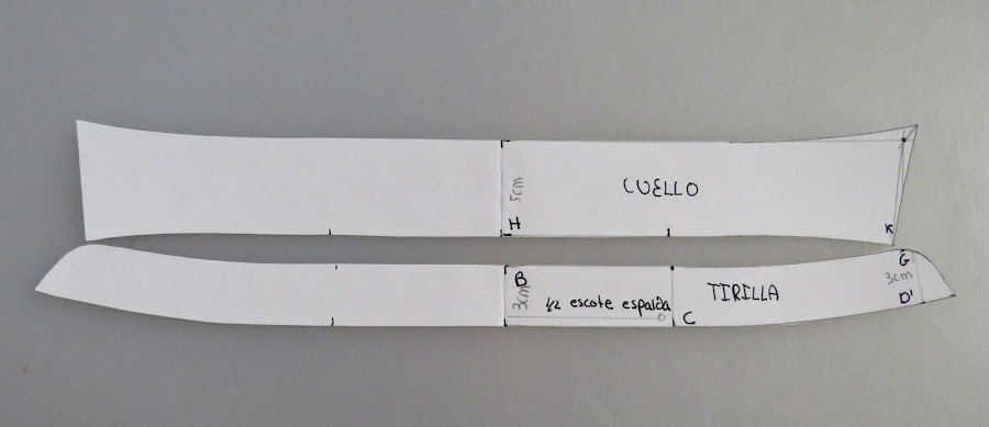 Así nos quedaría el cuello con tirilla, el espacio que está en medio, sobrará