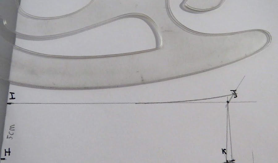 Desde J, sobre la línea oblicua, he marcado 1 cm