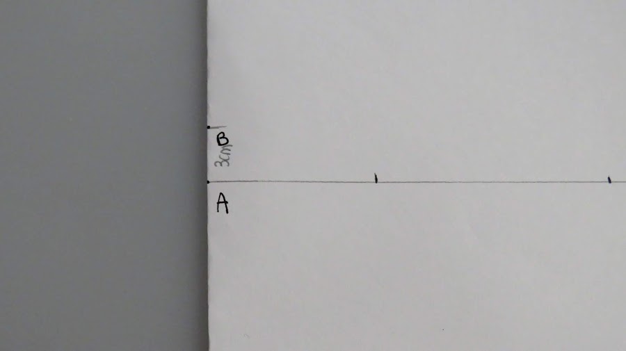 Trazar una línea en ángulo recto, marcando el punto inicial A