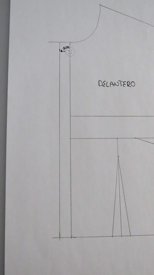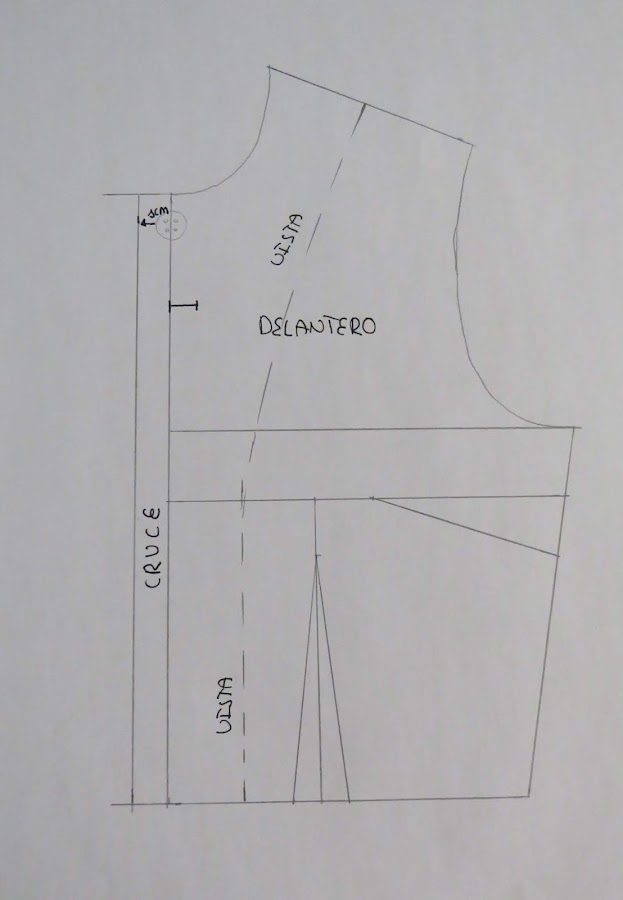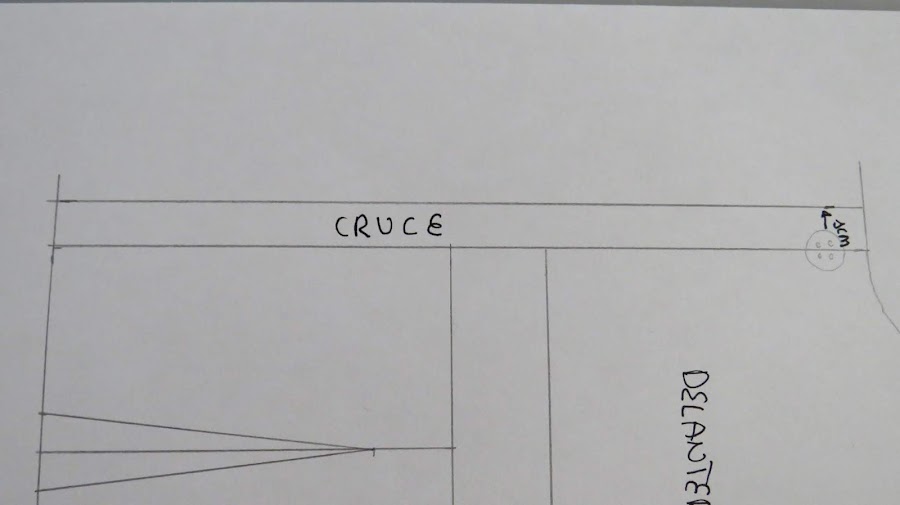 Ese será nuestro cruce, que no es más que un margen para poder colocar los botones y ojales justo en el centro de la prenda