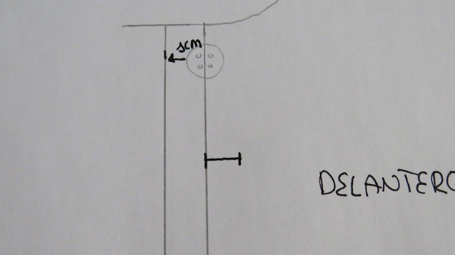 Marcamos esa misma medida en todo el largo, por ejemplo, si nos da 1,5 cm en total, contando con la mitad del botón y añadiendo 1 cm, marcamos 1,5 cm en el resto del largo