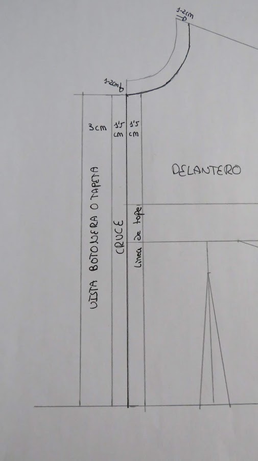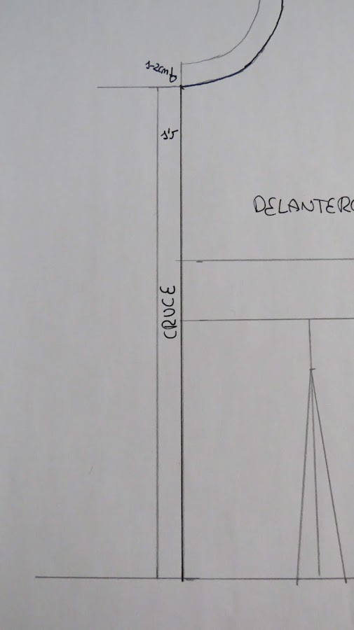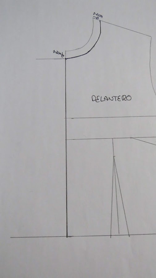 Para empezar, para cualquier camisa que vaya a llevar cuello, es conveniente ampliar el escote. En el anterior modelo no lo hice, pero es necesario