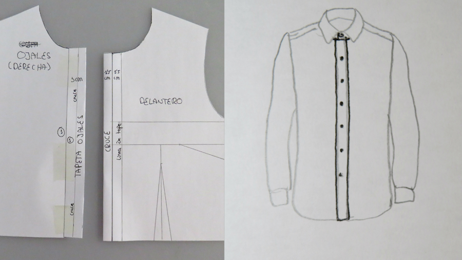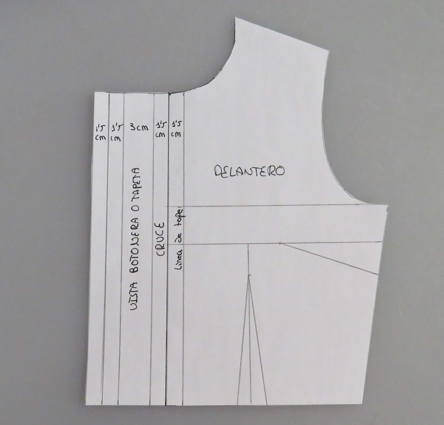 Esta será la pieza izquierda, donde irán los botones en una camisa de mujer. Para una camisa de hombre, será al contrario