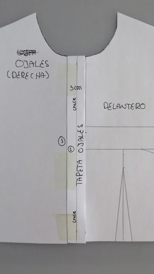 Esto lo estamos haciendo para la parte de los ojales, la cual será en el lado derecho para prenda de mujer, y en el izquierdo para hombe