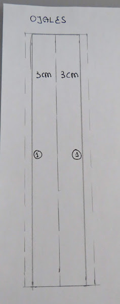 Y así por fuera, con su ancho total de 3 cms., que coincide con el ancho de la tapeta. Además, tenemos marcada la línea central, que es donde irán los botones