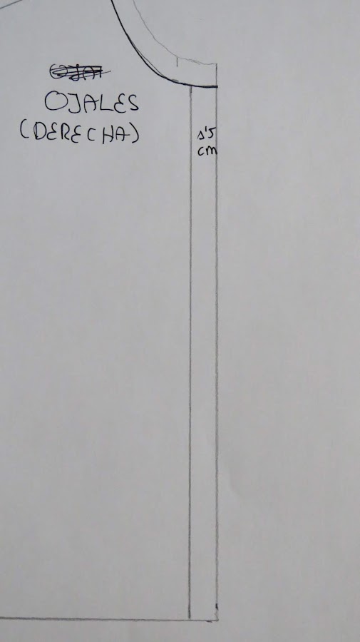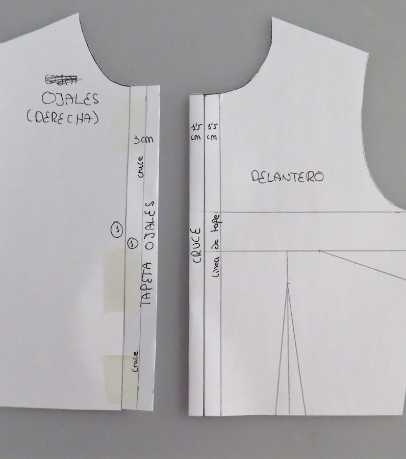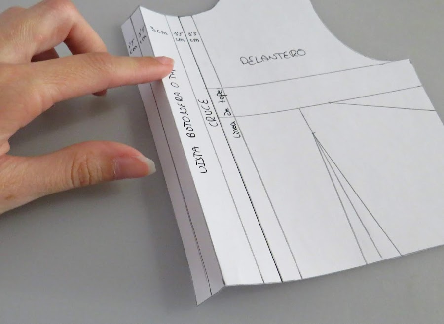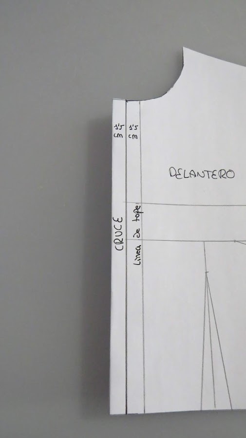 Tomamos nuestro patrón base delantero, pero dibujado del otro lado, para que nos simule el lado derecho
