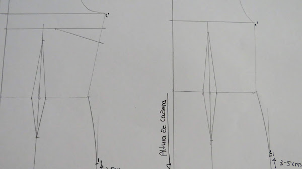 Otra opción sería, directamente, quitarle los 2 cm al delantero y, sobre el mismo patrón de espalda, subir 2 cm y alargarlo sobre el mismo dibujo.