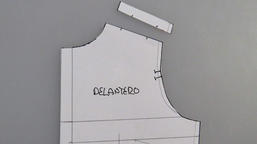 Ten en cuenta que, al ser tanto delantero y espalda dibujados por el mismo lado, esta pieza tendremos que ponerla del revés, ya que tiene que coincidir el cuello de la pieza con el cuello del patrón espalda, lo mismo con la sisa