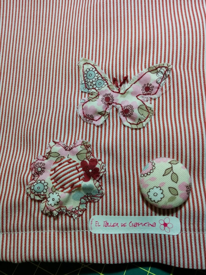 Y por ultimo algo mas sport con un aire naif, en telas combinadas con tonos rosas, blancos y granates, muy suaves y calentitas, en este caso el cuello y el corte bajo el pecho es similar a la azul anterior con un detalle en el costado izquierdo de mariposa, flor y boton forrado de la tela de flores haciendo contraste.