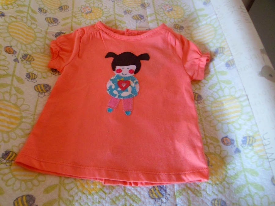 En esta camiseta he cosido la primera aplicación de este libro , una niña con coletas.