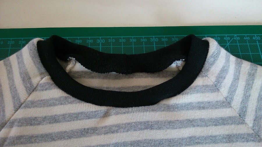 En el cuello no he hecho pespunte, me gusta cuando el cuello queda bien y no estoy obligada a hacer el dichoso pespunte que queda ondulado, puntadas feas a su bola, etc...