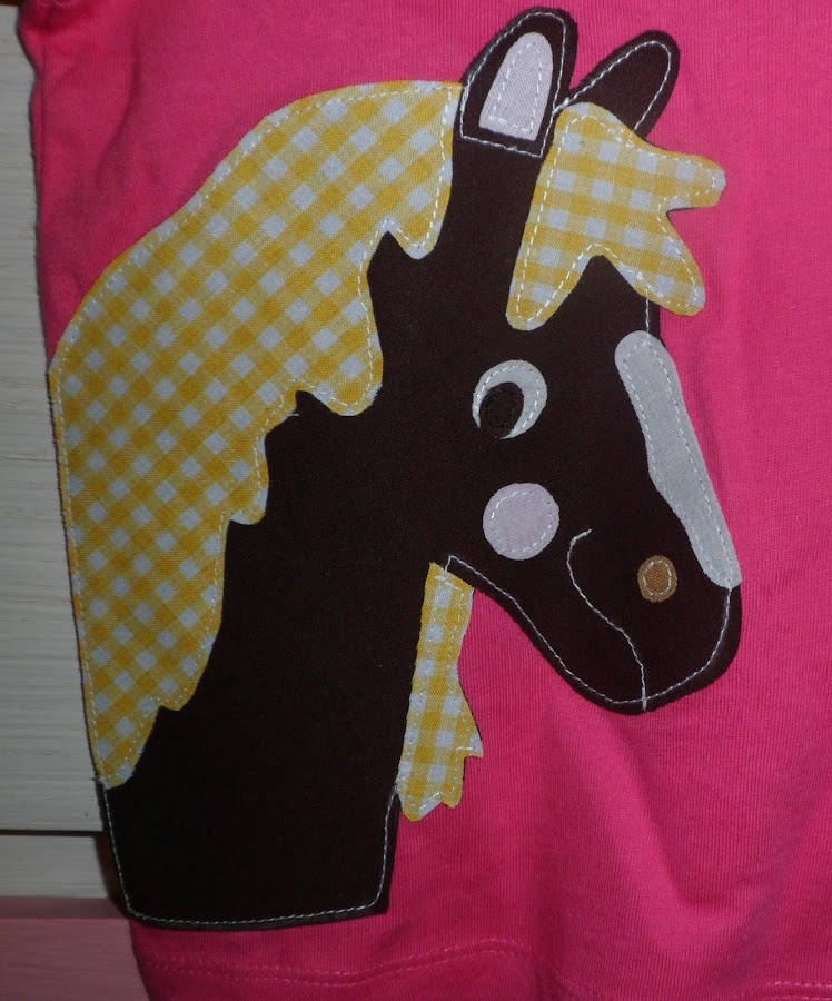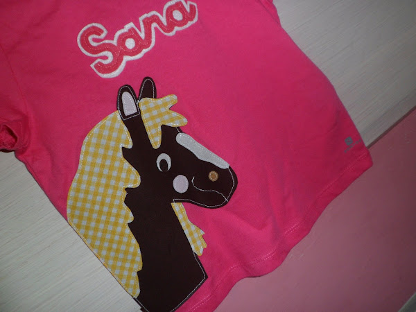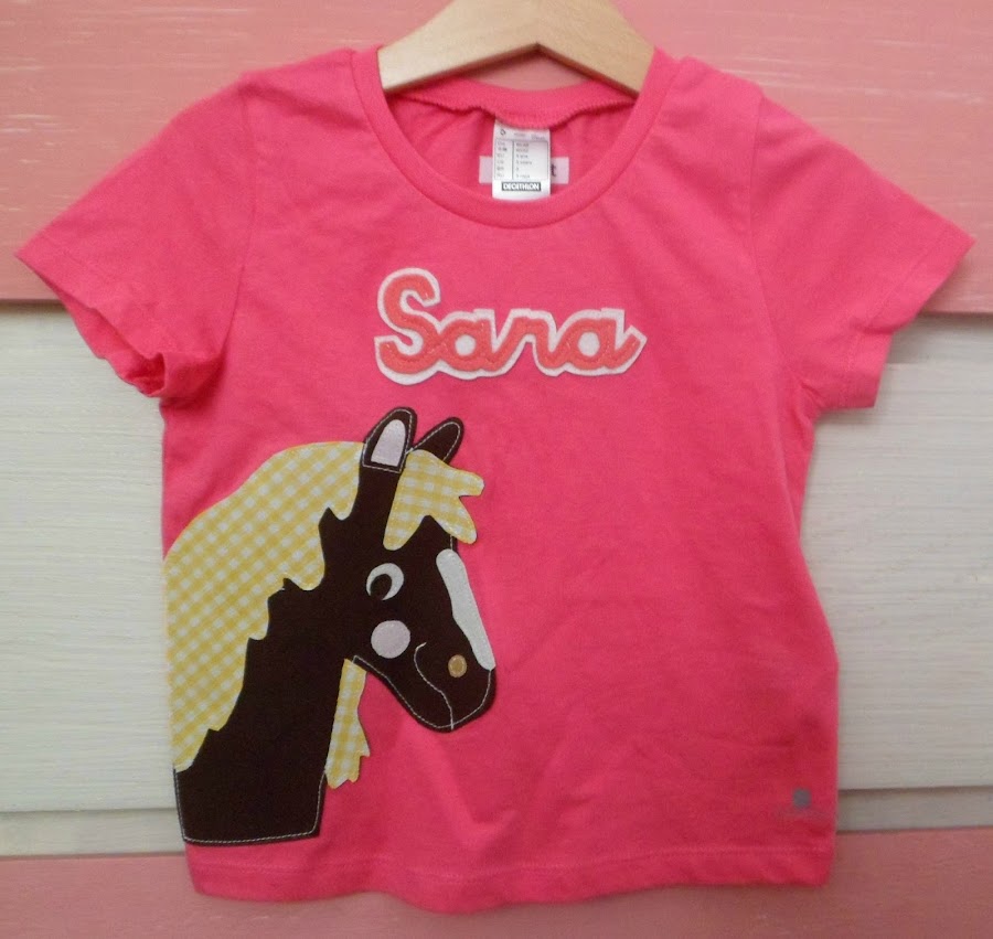 He personalizado la camiseta con una aplicación de caballo y con el nombre de la niña en fieltro.