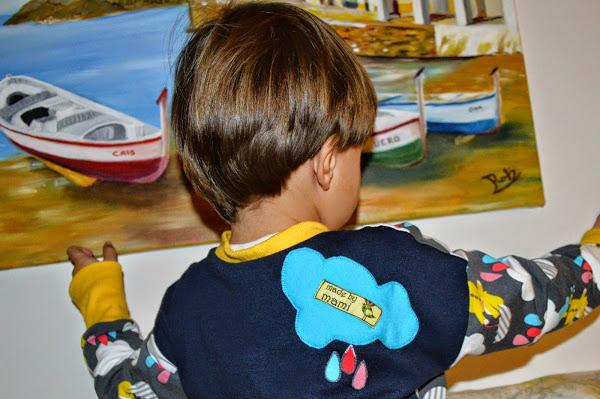 En la espalda he hecho una aplicación, como últimamente, a lo loco, sin fliselina y con etiqueta hecho por Mami. Me encanta esta etiqueta y coserla en todas sus prendas.