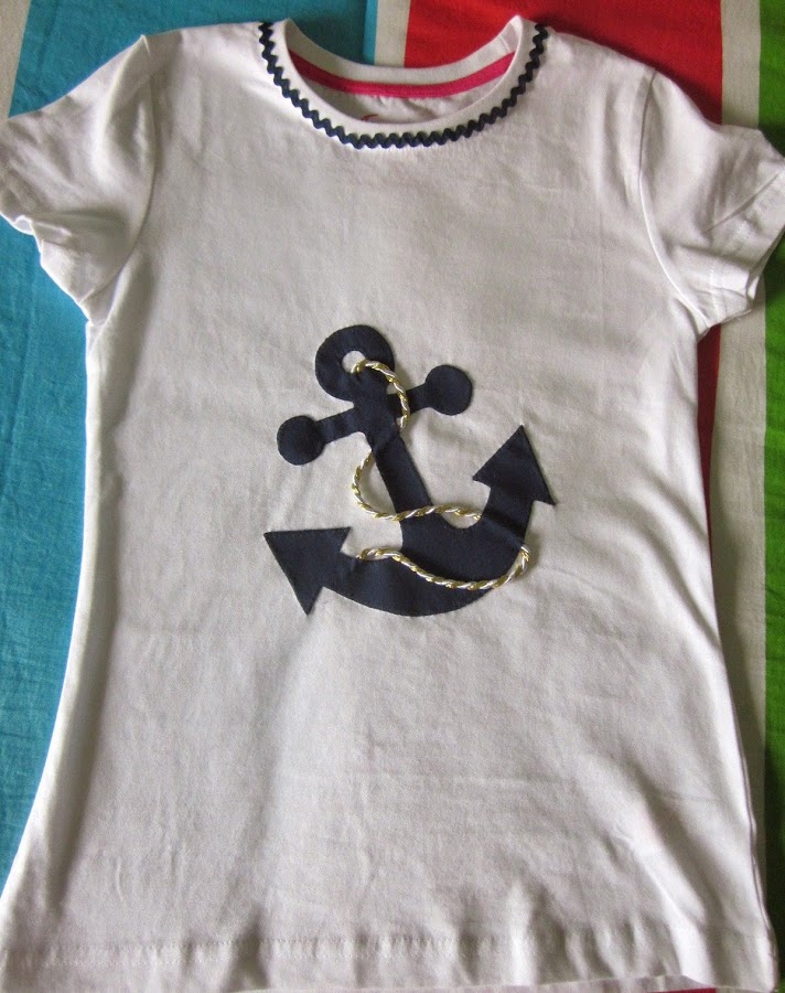 ¡¡Buenas tardes Creativas!! Parece que el buen tiempo ha llegado para quedarse, ya andamos con los cambios de armario buscando ropa más fresquita y ligera, así que hoy os propongo un DIY muy facilito y muy aparente para llevar a nuestros peques guapos y conjuntaditos con un pantalón bermuda con rayitas marineras y una camiseta con aplicación de un ancla. Como siempre, todo el conjunto es “ ...