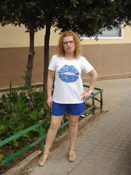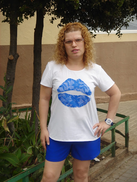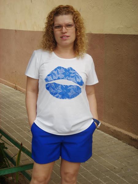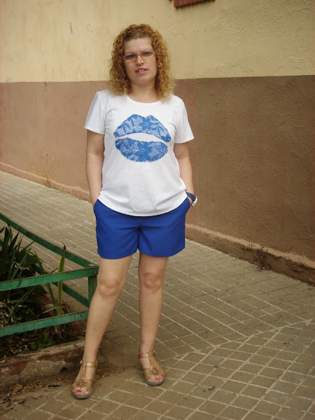 Si os habeis dado cuneta el aplique es un resto del top de guipur que lo he aprovechado para este modelo y el color le viene al pelo a este short de color azul electrico que hize el verano pasado y que podeis ver AQUI.