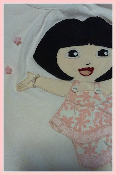 Antes de recortar las formas, pegar flixelina de doble cara. Descubrí que haciéndolo así, se recorta mejor y se desilacha menos. Una vez recortadas todas y cada una de las partes del patrón, colocarlas en su sitio y pegarlas con la plancha.