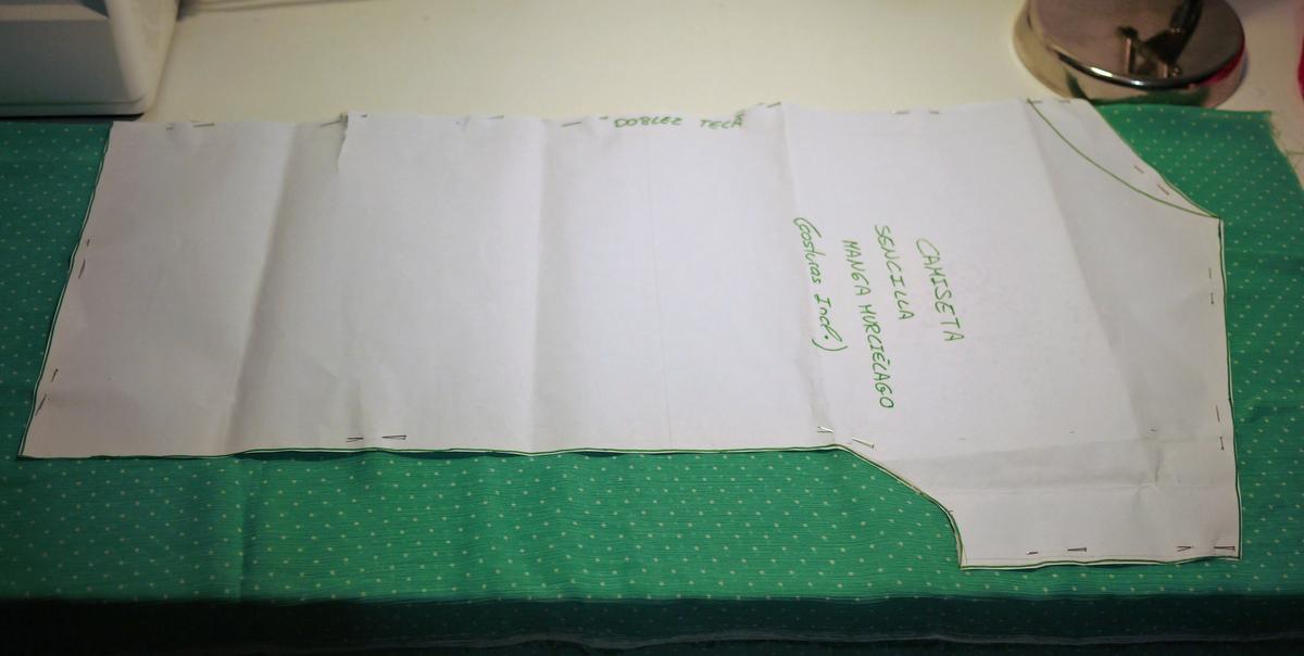 Colocación del patrón trasero de la camiseta sobre la tela