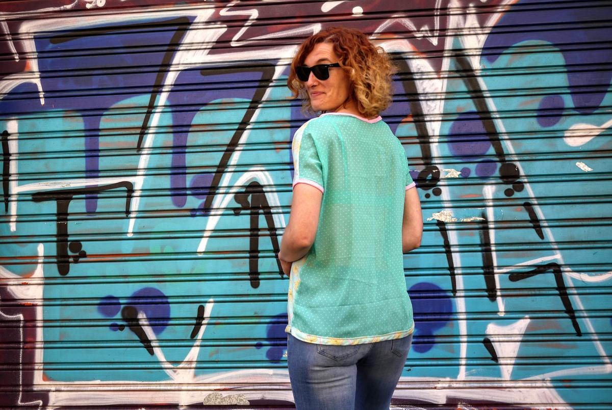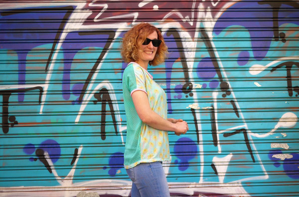 Yo me he hecho varias camisetas con este patrón, de diferentes tejidos, desde algodón elástico a gasa, y con diferentes acabados (con biés para rematar cuello y mangas, con un simple dobladillo,…) y la verdad es que son muy cómodas y sirven para cualquier ocasión.