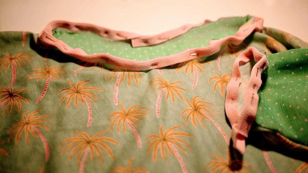 Alfilerado del biés en cuello y mangas