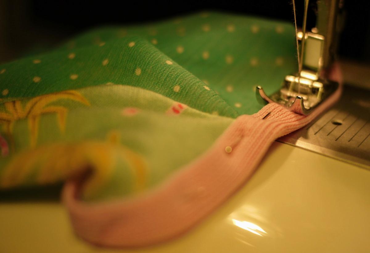 Una vez fijadas con alfileres coseremos ambas partes con una costura recta y remataremos con una costura en zigzag para asegurarnos de que no se deshilachan las telas.